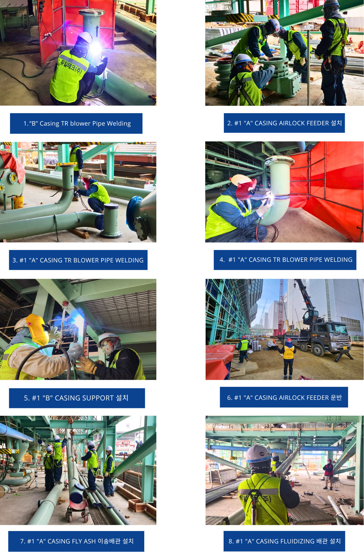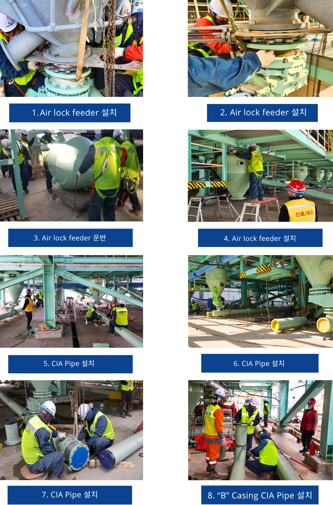 유일테크는 영흥 화력발전소의 노후 환경설비를 대상으로, 집진효율 및 배출가스 처리 능력을 향상시키기 위한 Air Lock Feeder 및 CIA Pipe, Blower 배관, Ash 처리 설비 등 핵심 구성품의 설치 및 교체공사를 수행했습니다.