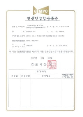 전문건설업 등록증