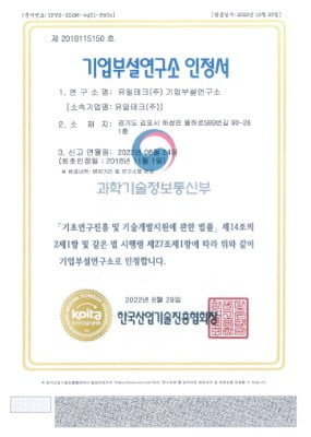 기업부설연구소 인정서