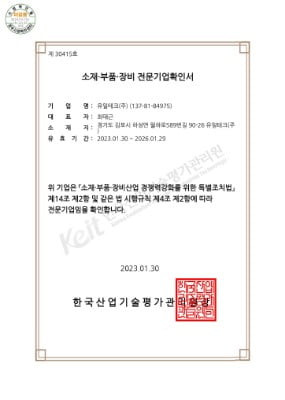 소재부품 전문기업 인증서
