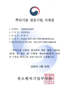 뿌리기술 전문기업 인증서