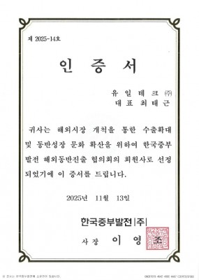 한국중부발전(주) 해외동반진출 협의회 인증서