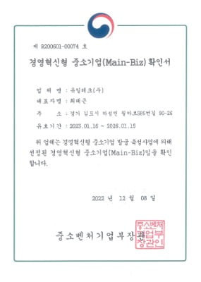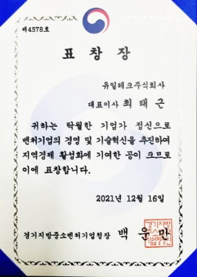 Promising SME in Gyeonggi Province Certificate