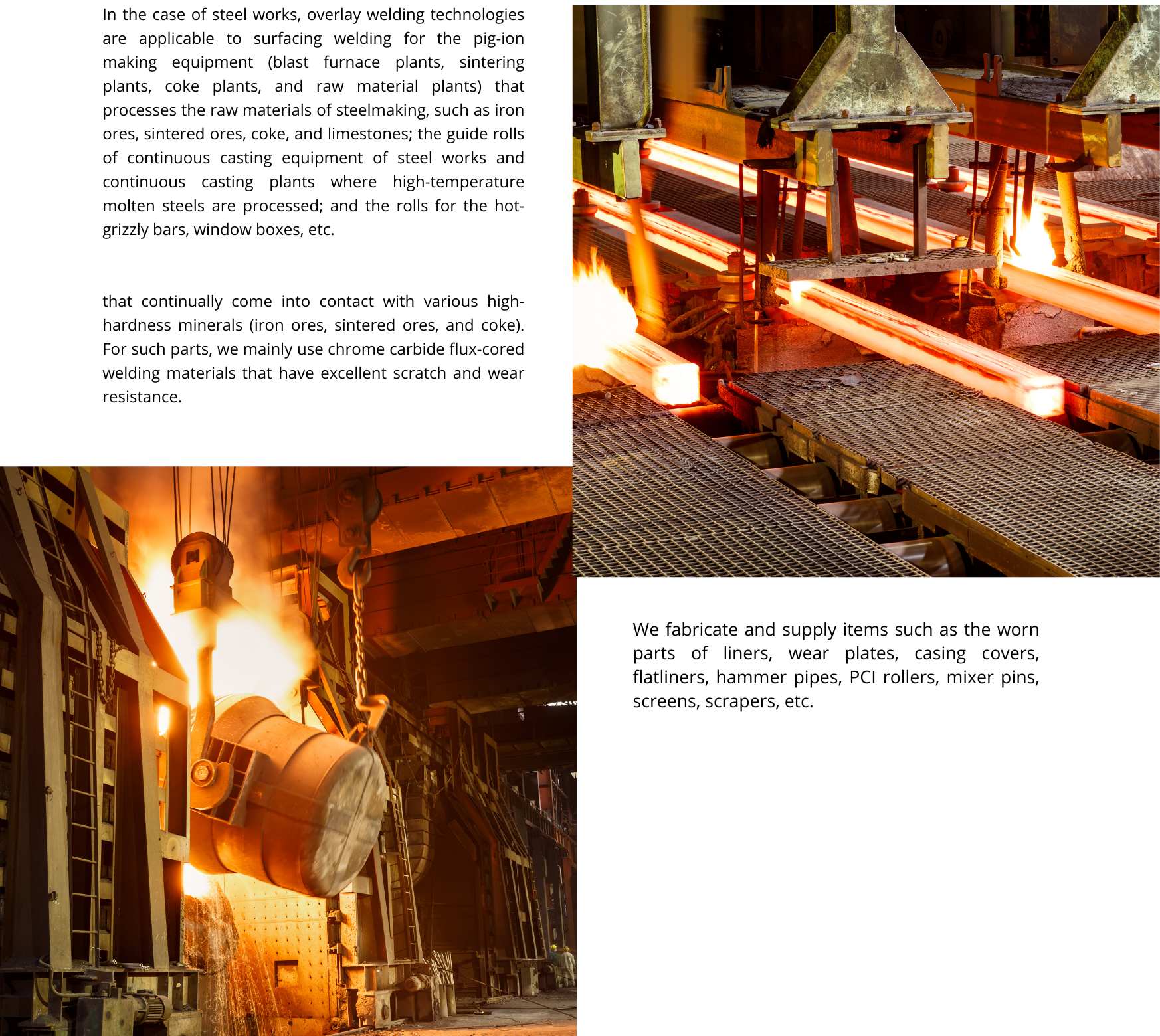 제철소는 고온 고하중 고충격 환경에서 슬래그 철광석 석회석 등 고형 물질이 설비에 지속적인 충격을 주는 대표적인 산업군입니다