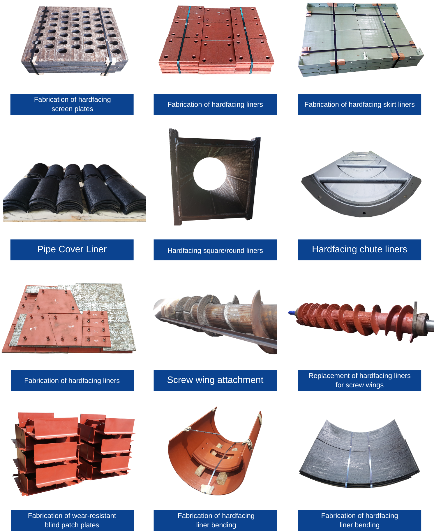 고온 충격에 강한 복합 합금층(Cr + Nb 기반)을 용접 적용하고 고체 이송부에는 세라믹 인서트 또는 초경코팅을 병행하여 내마모 성능을 강화합니다