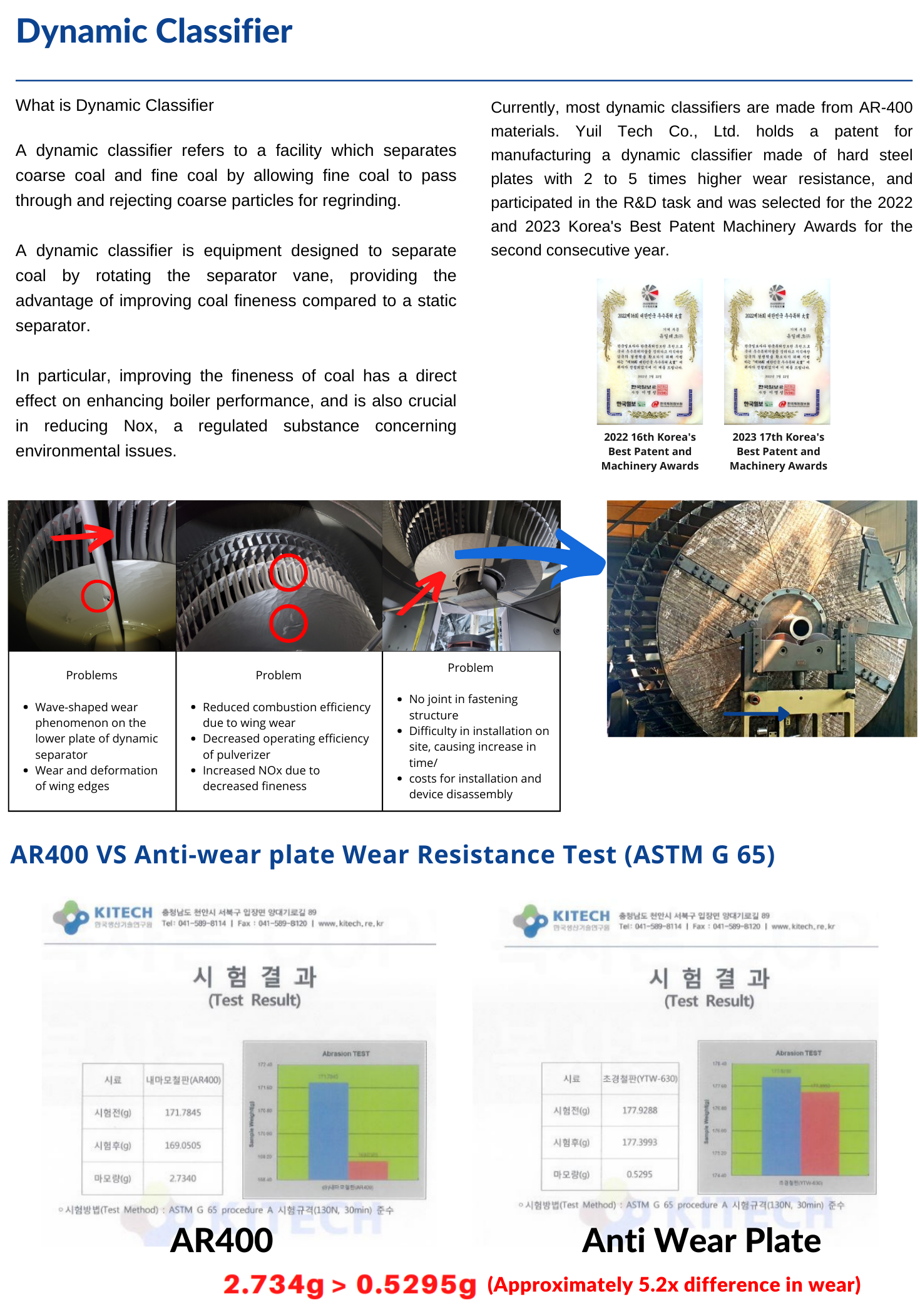Holding a domestic patent for the localization of dynamic classifiers, Yuil Tech’s system operates stably at power plant sites with minimal wear over long-term use.