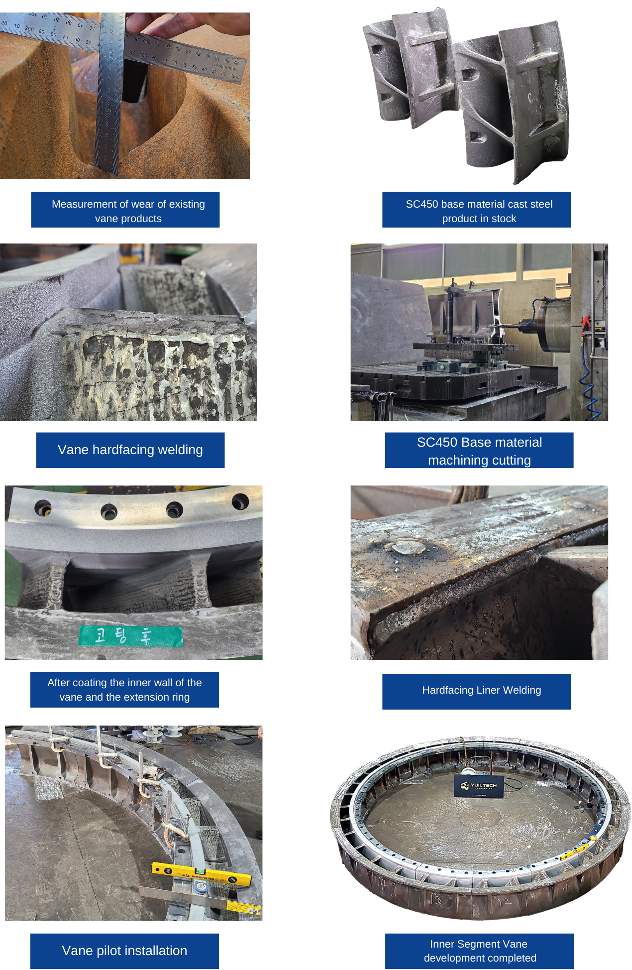 Yuil Tech has enhanced its service life by more than five times by combining wear-resistant cast steel with hardfacing and optimizing collision angles and recirculation paths.
